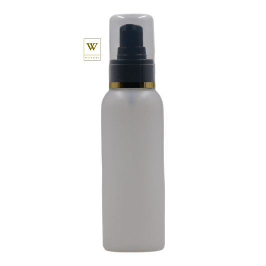 White Plastic Packaging Bottle/Black Serum Pump(Gold Ring)[100pc]